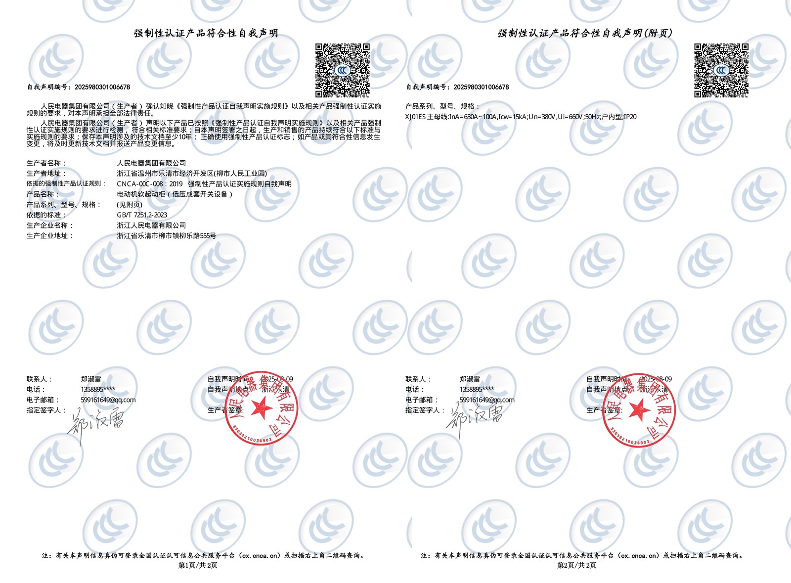 產(chǎn)品名稱:自我聲明認(rèn)證:XJ01ES 630A~100A電動(dòng)機(jī)軟起動(dòng)柜(編號:2025980301006678)